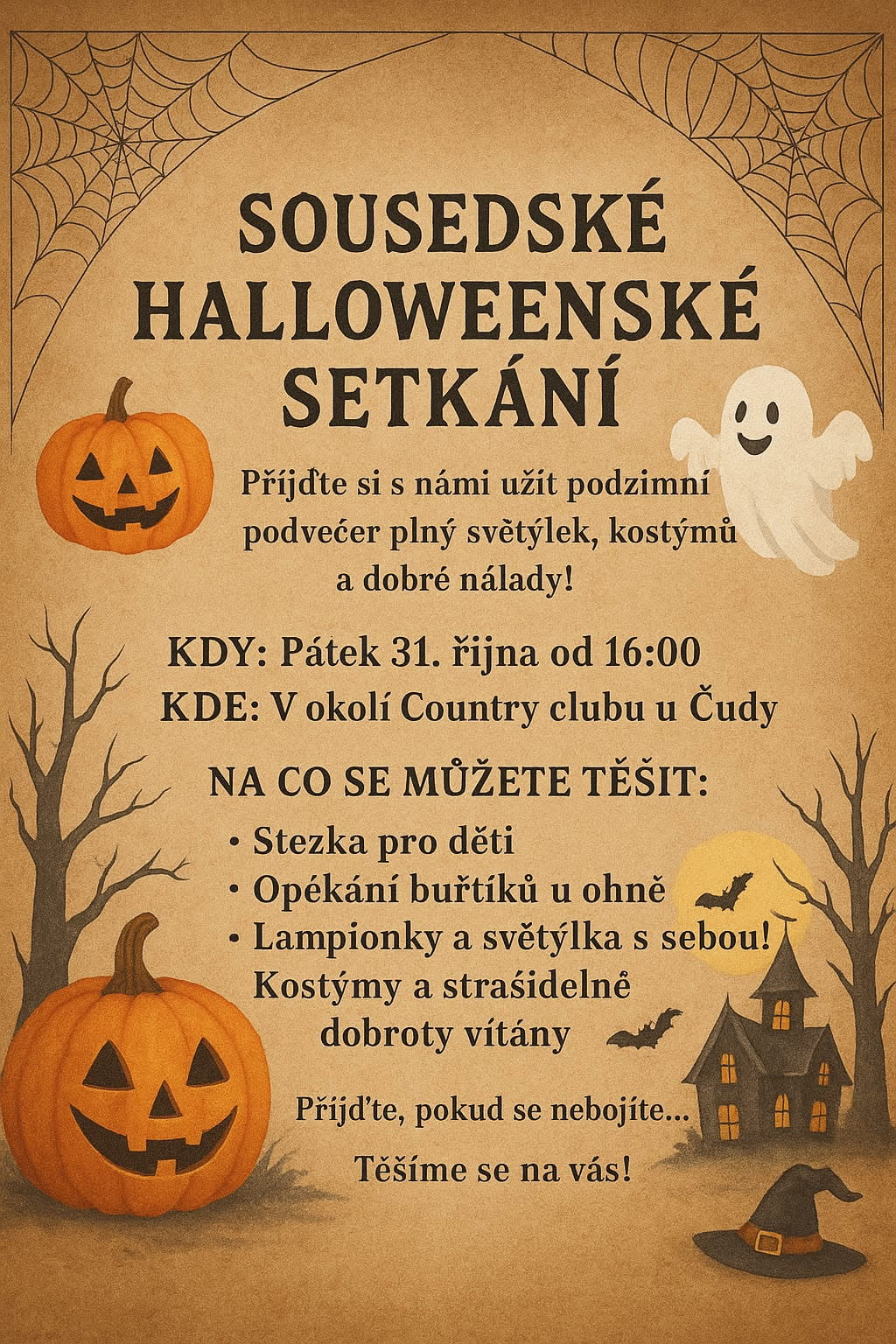 Rádi bychom vás pozvali na sousedské haloweenské setkání, které se bude konat